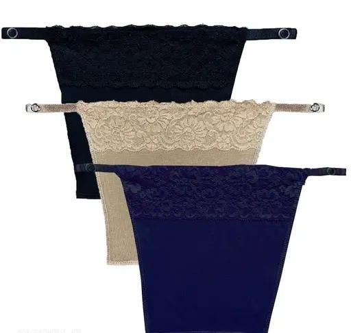 Name: Cotton Clip-on Mock Lace Camisole for Women, Deep Neck Cleavage Cover Cami Secret(Black,Blue,Beige) Free Size) Set of 3