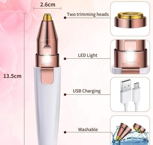 Product Name: 2 in 1 White Trimmer 2 in 1 painless Eyebrow trimmer and Facial Hair removel 2 in 1 jari flawless and Epilator, Lips Hair Removel, Nose Hair Removel Electric Razor Hair Removal for women Rechargeable Trimmer with Light and USB