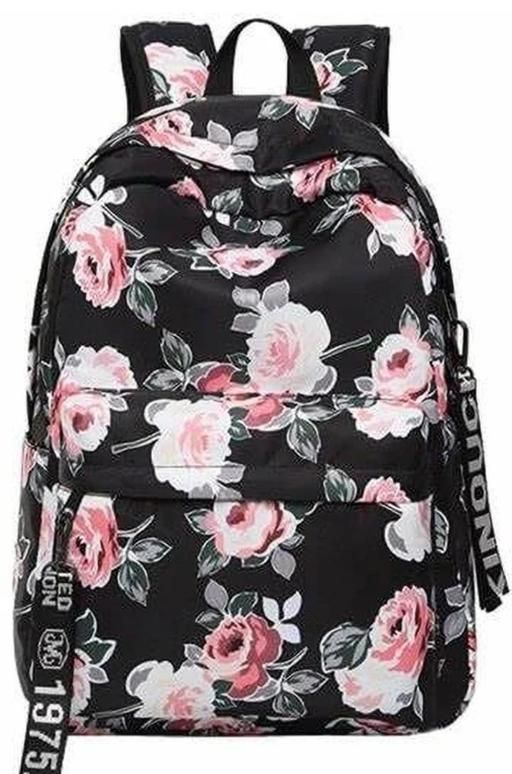 1. This black and white floral print backpack is designed for girls seeking both style and functionality. Crafted from high-quality materials, it is perfect for tuition, college, and travel, ensuring durability and elegance in every use. The intricate floral design adds a touch of sophistication, making it ideal accessory for any occasion.