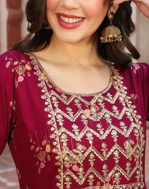 Name: Raindrop Women's Printed With Embroidery Work Anarkali Kurti