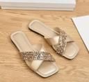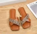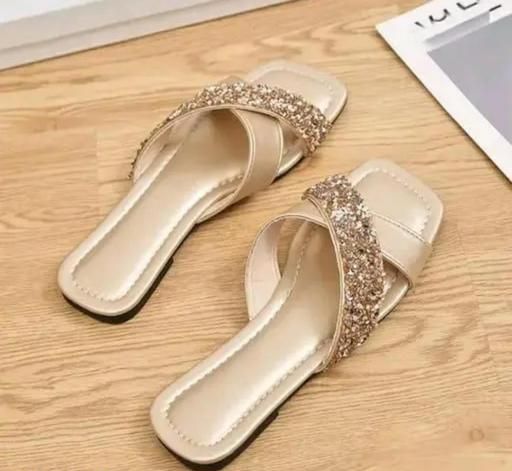 Name: golden croos sileper Material: Syntethic Leather Sole Material: Tpr Pattern: Embellished Fastening & Back Detail: Slip-On Net Quantity (N): 1 Sizes: IND-5, IND-6, IND-7, IND-8, IND-9 Country of Origin: India
