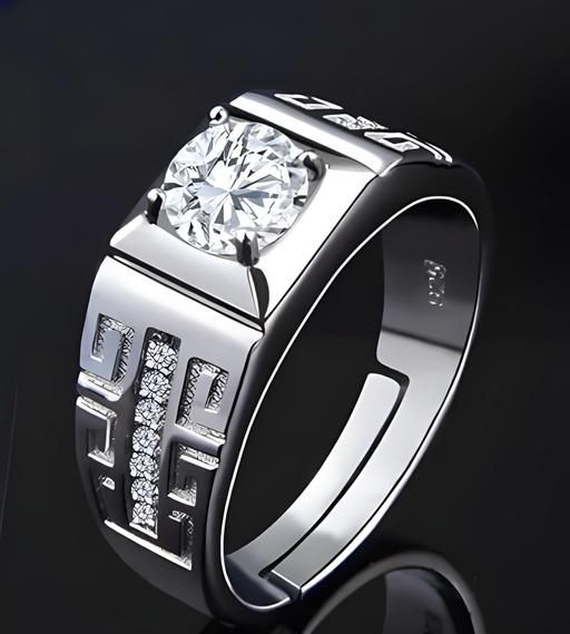 Men’s Silver-Plated Cubic Zirconia Studded Adjustable Finger Ring – Sophistication Meets Versatility