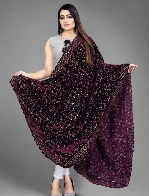 Name: wine velvet embrodery heavy sequins Fabulous Duppatta For Girls woman