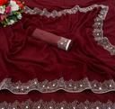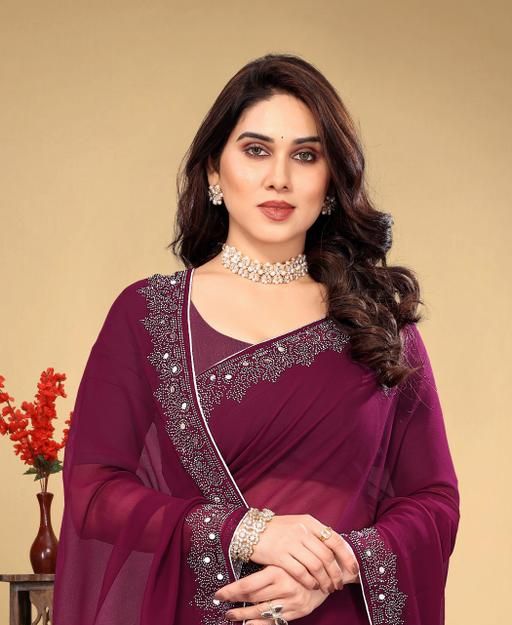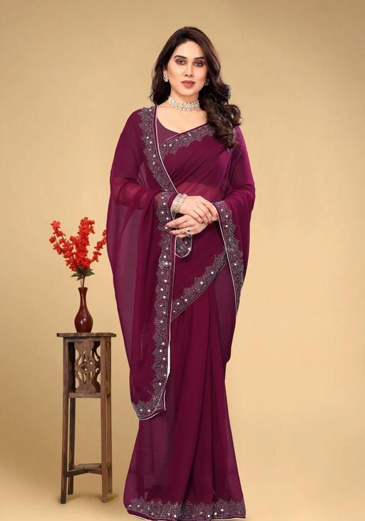 Famous designers tend to give reign to their imagination and create clothes that look interesting and guided by the desire to attract attention. You are bound to make a impressive style statement with this wine pure satin chiffon. Beautified with all synchronized effectively through the pattern and design of the saree. Comes with matching blouse.