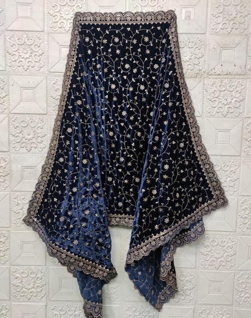 Name: BLUE Velvet Heavy All Over Floral Embellished-Sequined Scallop Bordered Dupatta