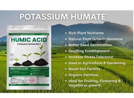 - *Stimulates Plant Growth*: Humic acid promotes root growth, increases germination and viability of seeds, and enhances plant resistance to diseases and pests.