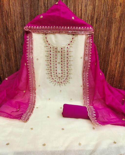 NEW TRENDY WHITE CHANDERI DRESS MATERIAL