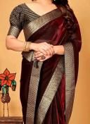 Italian Silk Embellished Party Wear Saree comes with Jacquard Self-design Unstitched Blouse Piece is perfect for Festive and Wedding Wear Function.