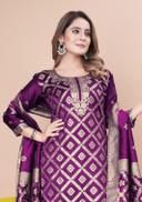 In this product suit fabric 2.0 meters bottom fabric 2.00 meters dupatta fabric 2.25 meters are provided This cloth is made from art silk fabric. introducing our beautiful collection of Banarasi Dress Material.get your body this beautiful collection of Indian Traditional Dress Material. Art Silk Salwar Kameez is also known as represented as Festive Dress Material or Women's Ethnic Fashion Dress Material.define your product in daily or occasion lifestyle in your Festive Dress Material.Banarasi Weaving Dress It can also be machine and hand washed for soft and cloth care The color of the cloth has no side effect in over Designer Dress Material.This Jacquard Silk suit Dress can be Making in different sizes This Art Silk Unstitched Dress Material is perfect for all functions. The Women's Ethnic Fashion Dress Material Will Keep You Feeling Cool And Refreshed This Banarasi Kurta Set Easy To Care For Available In A Range Of Colors And Prints Banarasi Silk Fabric Perfect For All Women And Girls Overall suit dress material is a choice for creating and eye-catching garments suitable for a wide range of special occasions It's known for its beauty and texture, making it a favorite among those who appreciate high-quality fabrics.