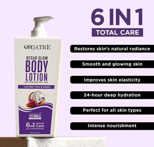 Name: Body Lotion 6in1 Care, Kesar Glow with Vitamin-E, 24 hr Intense Deep Moisturizer (400 ml)