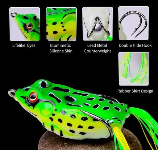 "Frog Lures Almost Real Swimming Actions, Flawlessly Replicates Actual Frog" ( Size: 6.5cm/ 65mm ) With a hollow body and realistic body design, makes frog-walking action on open water is easy and more irresistible. If you want to get some frogs to try out this season, these are your lures! Use these frogs when you have access to heavy covers, such as lily pads, a lot of fallen timber, and heavy aquatic weed growth. You will be impressed with their floating abilities or toughness. It's durable, has good hooks that are positioned just right, and has a good hookup ratio. The frog lures will be essential addition to any tackle .