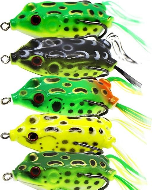 Name: 5-Piece Frogs for Fishing - Lifelike Design, Weedless, Topwater Action, Bass and Pike Lures