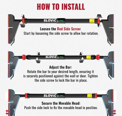 [ ADJUSTABLE LENGTH (76 - 95 cm)]: The Slovic Pull Up Bar features adjustable length that ranges from 76 to 95 cm, allowing it to fit a variety of doorways.