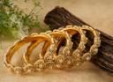 Celebrate the beauty of traditional jewelry with this stunning pack of 4 Gokru Churi bangles in a rich golden hue. Known for their intricate design and cultural significance, these bangles embody elegance and grace, making them the perfect accessory for weddings, festive occasions, and traditional ceremonies.Key Features:Traditional Gokru Design: Inspired by heritage craftsmanship, featuring intricate patterns and a classic golden finish.Durable and : Made with premium-quality materials to long-lasting shine and strength.Versatile Accessory: Perfectly complements ethnic outfits like sarees, lehengas, and salwar suits.Thoughtful Gifting Choice: A beautiful gift for special occasions such as weddings, anniversaries, and festivals.Material: (Specify material, e.g., brass, gold-plated alloy, or other embellishments.)Size Options: Available in multiple sizes for a comfortable and secure fit.Add a touch of timeless charm to your jewelry collection with these golden Gokru Churis. Order now to embrace elegance with every wear!