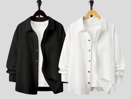 Name: Men Striped Solid Popcon Shirt (Pack Of 2)