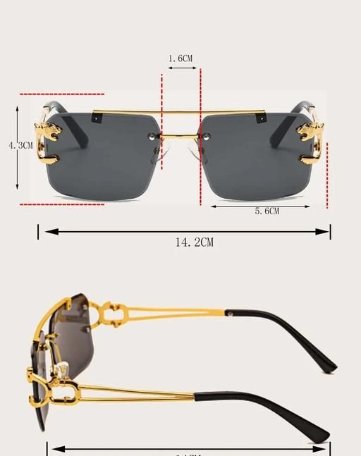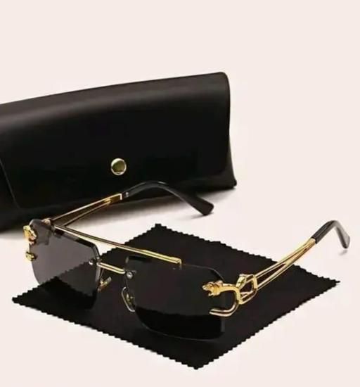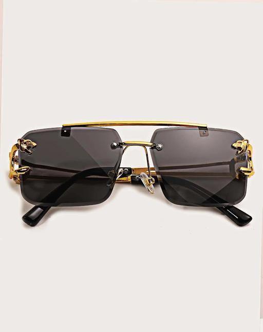 Name: TBH_COLLECTION | rimless golden square frame Sunglasses (Men & Women, BLACK shades) (lion design)