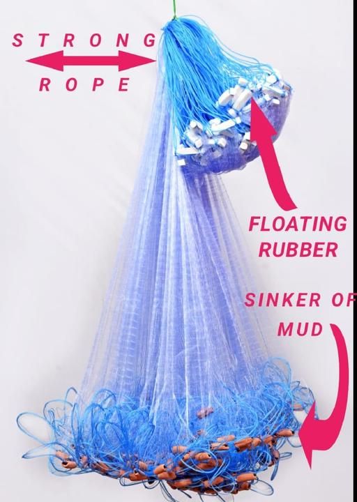 The net comes equipped with mud sinkers, which are essential for keeping the net submerged in water and maintaining its position. This feature is especially useful for fish net jaal setups, providing enhanced stability and efficiency while fishing. The well-balanced design ensures that the net spreads evenly, maximizing the chances of a successful catch.