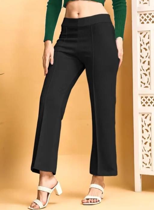 Name: trendy bell bottom wide leg pants, showcased in two stunning images featuring women exuding confidence and style. Fabric: Cotton Blend Pattern: Solid Net Quantity (N): 2 Sizes: S (Waist Size: 28 in, Length Size: 37 in, Hip Size: 34 in) M (Waist Size: 30 in, Length Size: 38 in, Hip Size: 36 in) L, XL (Waist Size: 34 in, Length Size: 38 in, Hip Size: 40 in) Discover the elegance and versatility of our wide leg pants, showcased in two stunning images featuring women exuding confidence and style. These pants are designed to provide a flattering silhouette while ensuring comfy andt ease of movement. Perfect for both casual outings and sophisticated events, they can be effortlessly paired with various topwear and accessories to create a ensemble. Embrace the trend of wide leg pants and elevate your wardrobe with this essential piece. Country of Origin: India