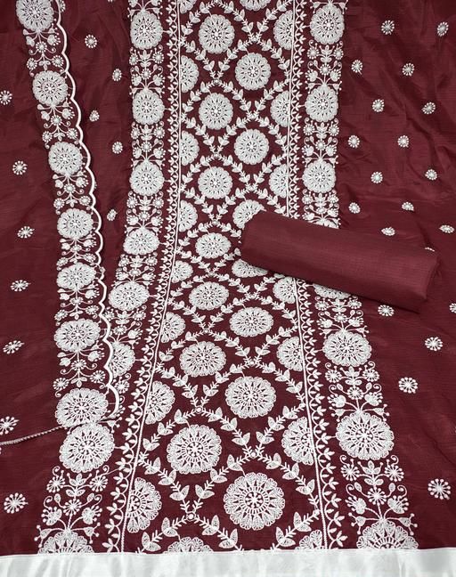 Name: Unstitched Silk Dress Materials for Women and Girls (maroon)
