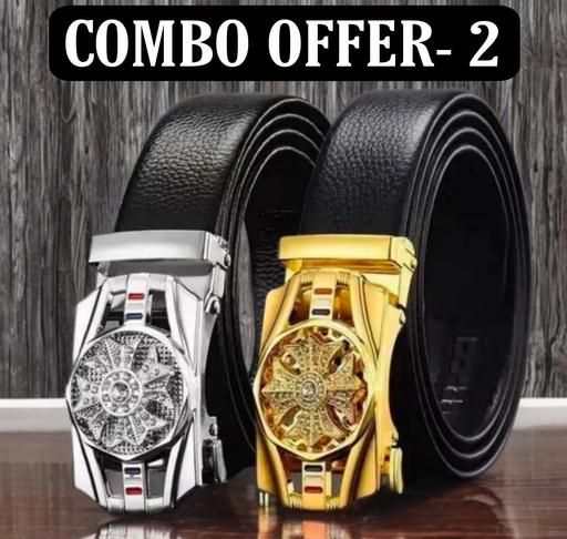 Name: Belt for mens, combo pack of 2 belts. Silver and gold buckles set, formal and casual wear