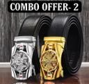 Belt for mens, combo pack of 2 belts. Silver and gold buckles set, formal and casual wear