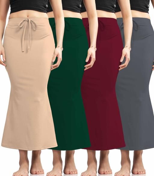 Name: Women's Slim Fit Fancy Saree Shapewear For Women & Petticoat, Skirt For Women, Microfiber Flare Fishcut Lycra Blend Saree Shapewear, Stretchable Petticoat Shaper, Pack Of 4