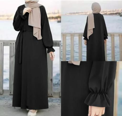 Name: New Simple Elastic Fit Sleeves Daily Wear Abaya Burqa WITH BELT (Without Dupatta).