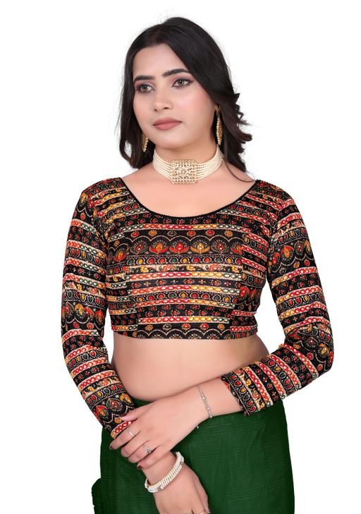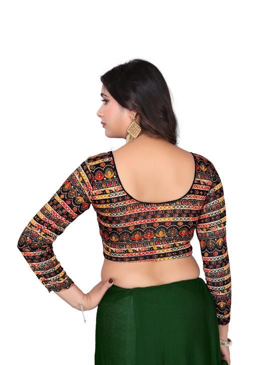 Name: Readymade Blouse with Full Sleeves round Neck Printed Aztec Pattern Full Stretchable