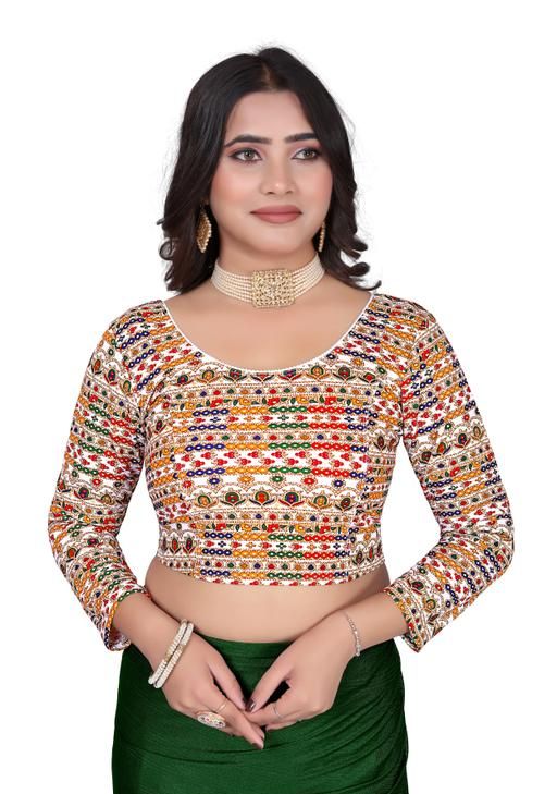 Name: Readymade Blouse with Full Sleeves round Neck Printed Aztec Pattern Full Stretchable