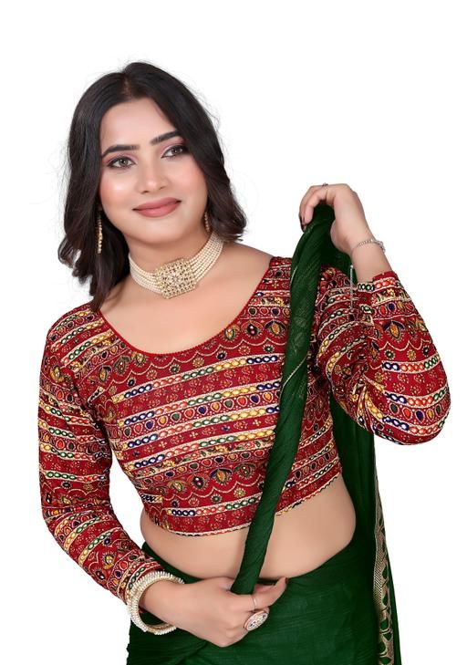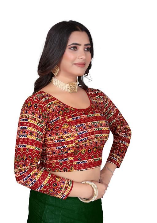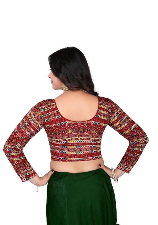 Readymade Blouse with Full Sleeves round Neck Printed Aztec Pattern Full Stretchable
