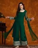 Name : Women Zari Lace Work Georgette Kurta With Palazzo And Dupatta Set