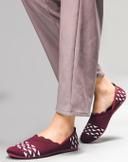 Name: EMBE-18 Material: Textile Fastening & Back Detail: Closed back Pattern: Woven Design Type: Ballerinas Step into effortless style with our latest collection of trendy casual belly shoes designed for the modern woman. Combining comfort with chic designs, these belly shoes are perfect for everyday wear, offering a stylish yet laid-back look. Whether you’re out running errands, meeting friends, or enjoying a casual day out, these shoes will keep you looking fashionable without sacrificing comfort. Crafted from high-quality materials, these belly shoes feature sleek lines, subtle embellishments, and trendy color options that complement any casual outfit. From minimalist solid hues to fun patterns and textures, there's a style for every taste. The flexible soles ensure easy movement, while the cushioned footbed provides support for long hours of wear. Ideal for pairing with jeans, skirts, or dresses, these stylish belly shoes effortlessly elevate your outfit, making them a versatile addition to your wardrobe. Whether you're looking for something classic or want to try a bold new trend, these belly shoes bring the perfect combination of fashion and function. Sizes: IND-5 (Length Size: 25.2 cm) IND-6 (Length Size: 25.8 cm) IND-7 (Length Size: 26.5 cm) IND-8 (Length Size: 27.1 cm) Country of Origin: India