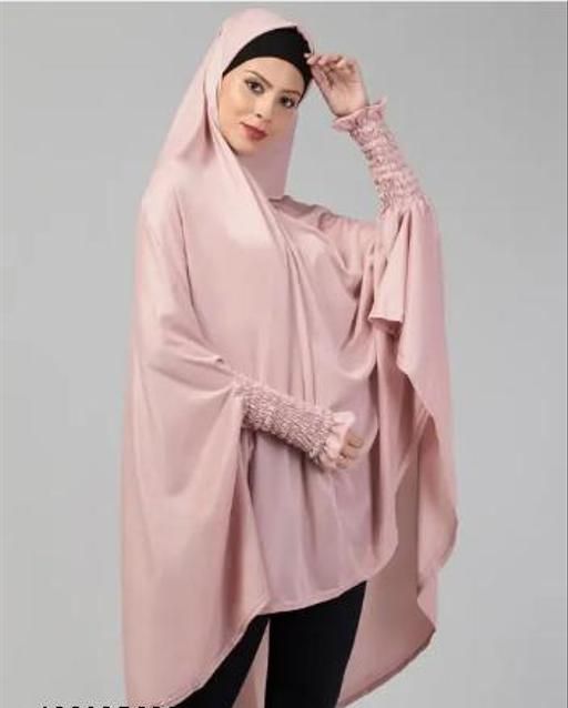 Name: Free Size baby pink Stretchable Smoking Design at Wrist Jilbab Cum Prayer Khimar Hijab