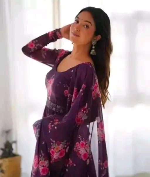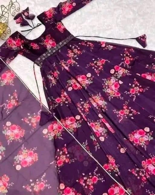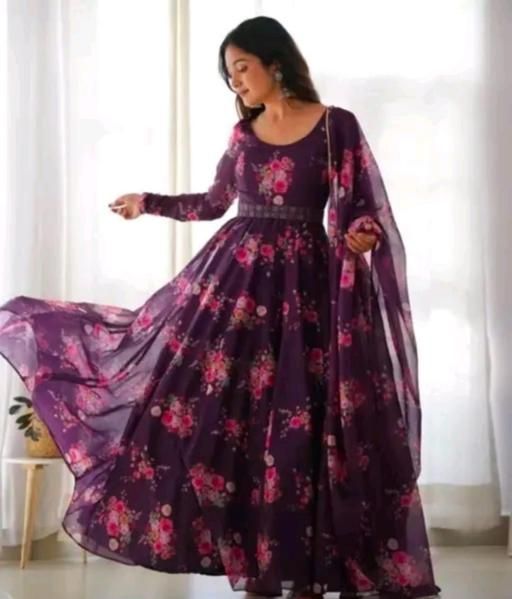 Name: Flower Print Long Kurti With Dupatta (No Bottomwear)