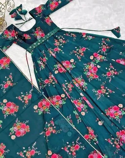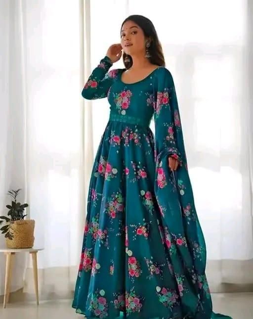 Name: Flower Print Long Kurti With Dupatta (No Bottomwear)