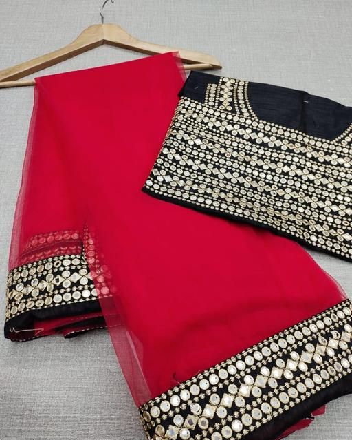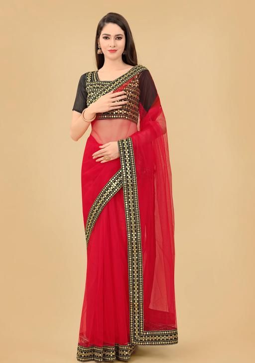 Name: Net Red Lace border Saree With Blouse