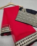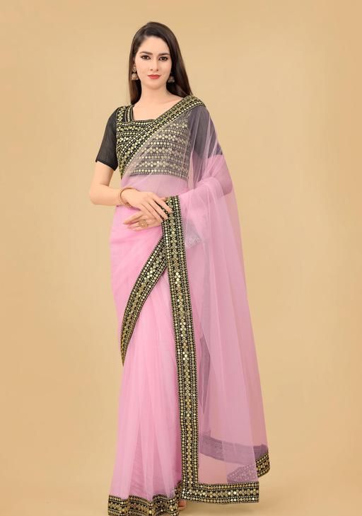 Net Pink Lace border Saree With Blouse