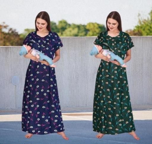 Name: WOMEN Premium quality COTTON feeding/Maternity/ ZIPPER NIGHTY COMBO (Pack of 2)