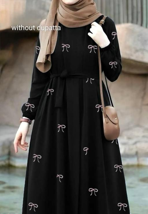 It's a free size bow abaya it's beautiful modesty trendy islamic wear party wear daily wear college wear burkha Abaya with imported fabrics it's suitable for womens girls ladies it's comfortable wearing any function it's washable