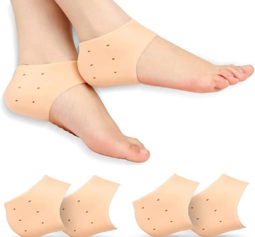 Name: Silicone Gel Heel Pad Socks for Pain Relief - 2 Pair (Beige, Free Size)