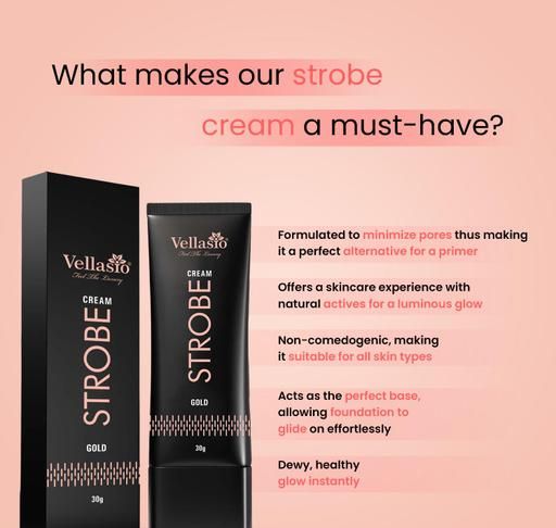 Golden Radiance: Get a natural, golden glow with Vellasio Gold Strobe Cream, perfect for warm undertones.
