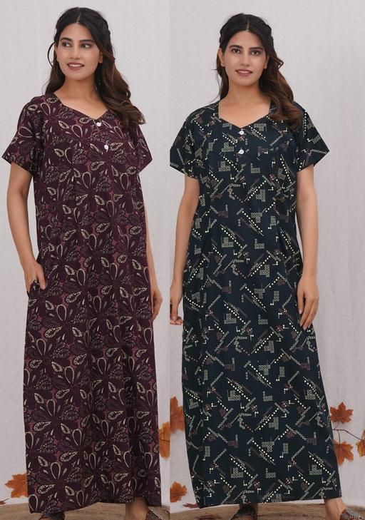 Experience ultimate comfort and style with our brand ”Vardhana” .This nighty gown is made up with 100% pure organic cotton directly crafted from the mill, which gives soft, breathable and luxurious feel. This cotton nighty is available in free size which has (bust:48) and (length:54) that fits to a normal body of every women from L to 2XL.This cotton nightdress has a relaxed fit and also has a side pocket so it stays comfort to your body.
