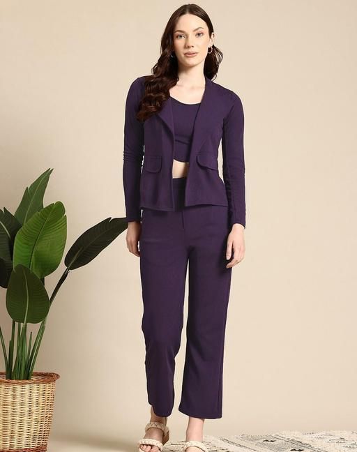 Lycra Fabric this 3 piece co-ord Blazer, Inner Top and Pant set comes with a single breasted cropped blazer which has a sttandard notch collar and high waisted pants, Perfect for your Casual wear and can be layered and worn with anythin,this Casual blazer, Procent is a modern women's fashion brand . This ellegant Blazer is especially designed for the women who are entering or have already entered the corporate world.