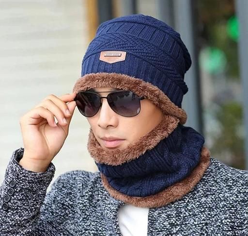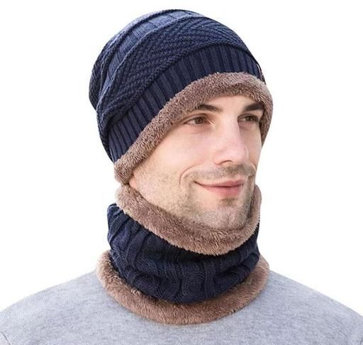 Name: UPAREL Ultra Soft Unisex Woolen Beanie Cap + Neck Muffler Scarf Set for Men and Women (Navy Blue Color, 1 Pcs)