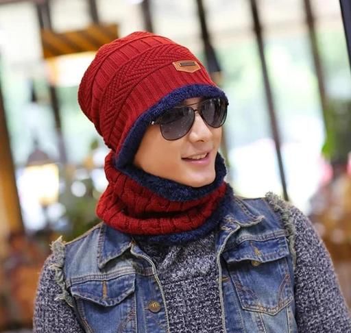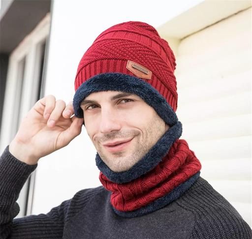 Name: Ultra Soft Unisex Woolen Beanie Cap + Neck Muffler Scarf Set for Men and Women (Red Color, 1 Pcs)