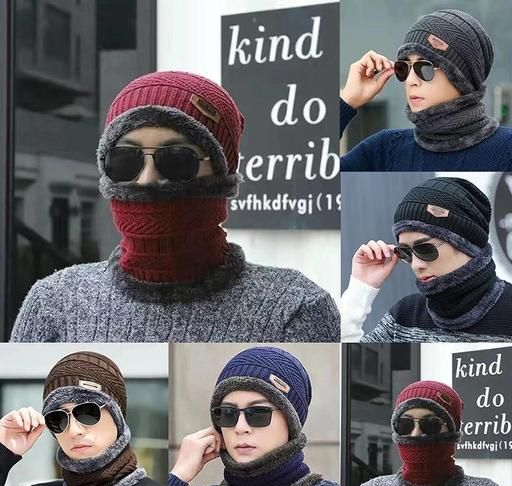 Ultra Soft Unisex Woolen Warm Winter Beanie Cap Plus Muffler Scarf Set for Men and Women.