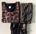 The classic zari work kurta comes paired with trousers and a matching dupatta, all in a fully stitched, ready-to-wear design