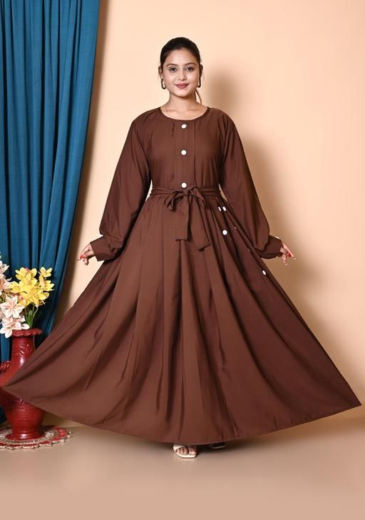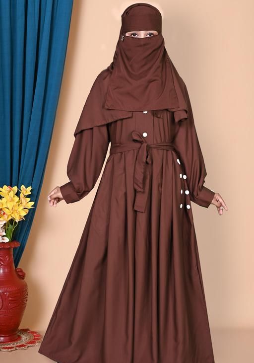 Name: Brown Turkish Style Plating Burqua Abaya With Dupatta Nosepeice and Belt.