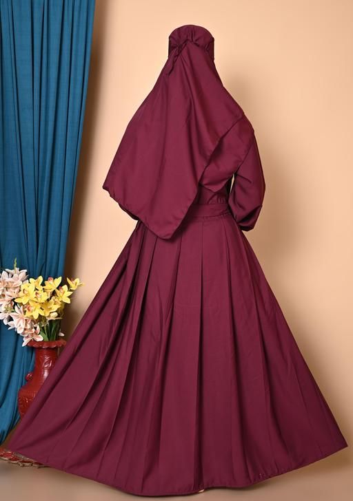 Name: Maron Turkish Style Plating Burqua Abaya With Dupatta Nosepeice and Belt.