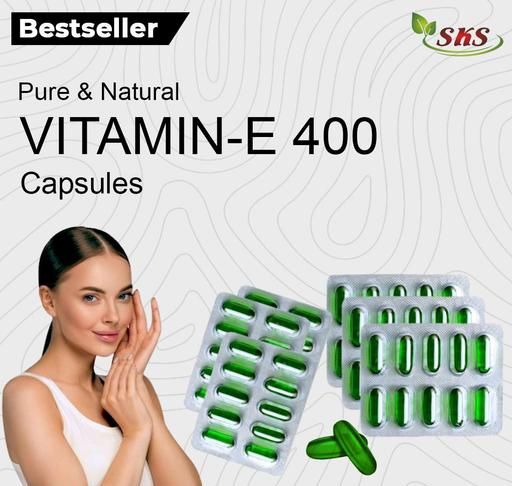 Vitamin E400 Mg(Alpha Tocopherol ) Best Remedy For Hair Fall, Help In Dry Skin, Scal nourishment, Antidandruff, Vitamin E 400 Capsules Pack of 120 capsules